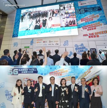 港鐵*廣告及機場快綫廣告呈獻「5G全城夏日狂熱」利用升級版5G黃金頻段 讓廣告商及乘客的即時互動體驗更流暢 戶外大型廣告效果更卓越